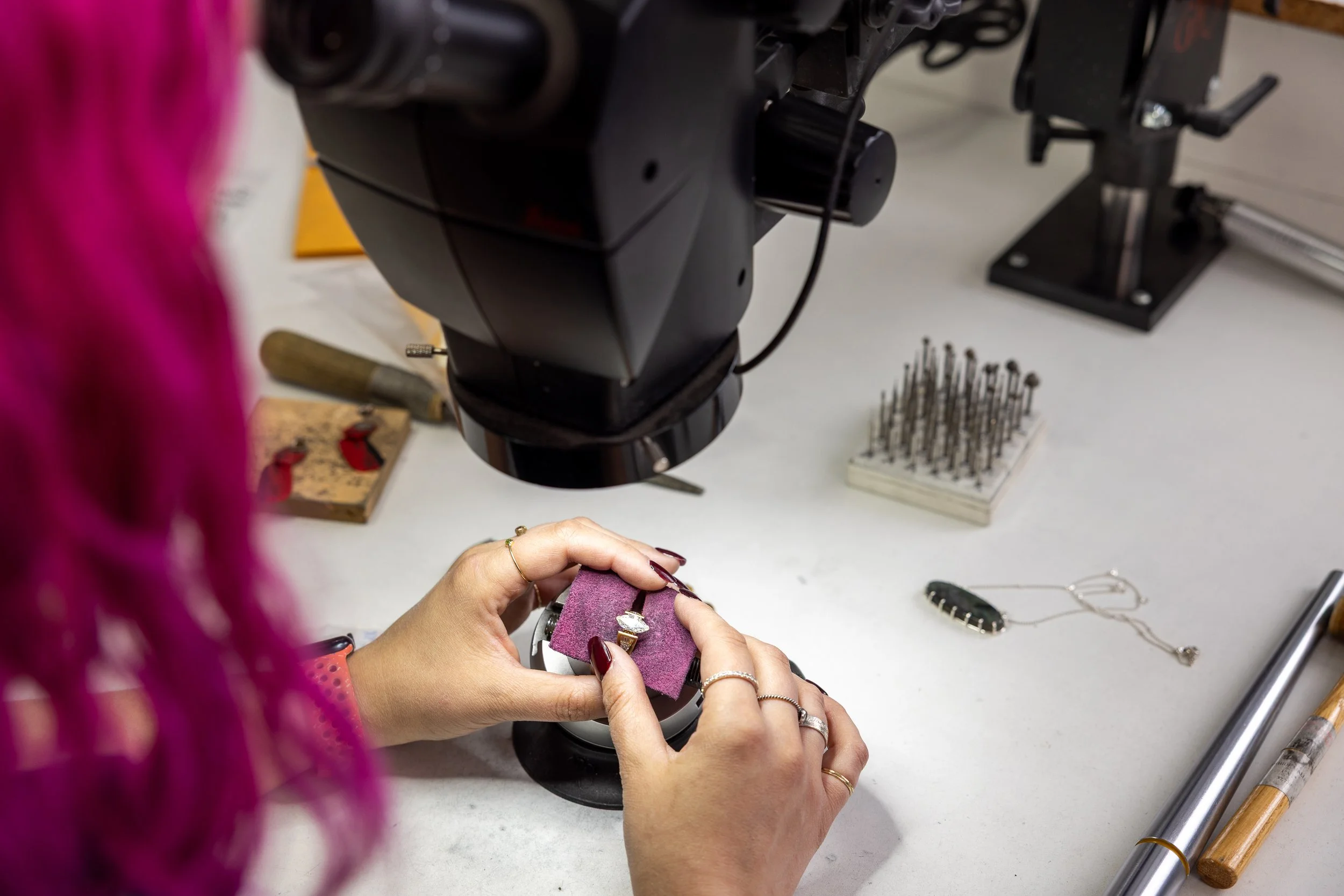 I’m a Seattle-based jeweler specializing in custom designs, heirloom restorations, and thoughtful repairs, all done by hand, start to finish, right here in my studio. Every piece I work on carries a story, and I take pride in preserving that story through craftsmanship, care, and attention to detail.